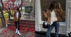 Leather – particularly with fringe detailing – epitomizes Western aesthetics. While a proper fringe jacket represents the ideal, any quality leather piece can anchor a Western look. A brown leather jacket paired with white tank tops and suede-detailed pants captures the essence without requiring specialized Western pieces. Layer in leather accessories like beaded necklaces to reinforce the theme.